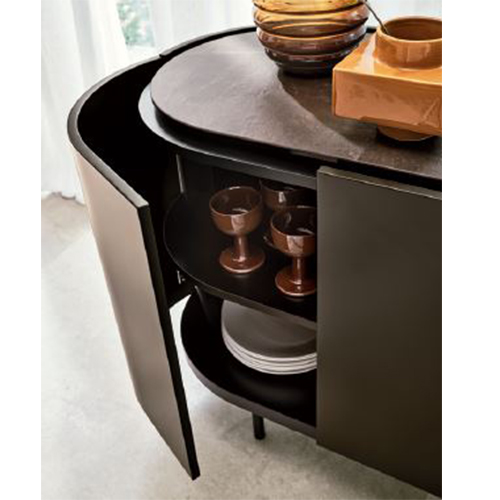 Lake - это коллекция тумб с мягкими изогнутыми линиями. Овальная форма подчеркнута утопленной столешницей, которая немного меньше по периметру, что создает полезное пространство для открывания дверей и выдвижных ящиков. Отделанный со всех сторон и лишенный острых краев, сервант идеально подходит для размещения в любом месте гостиной.