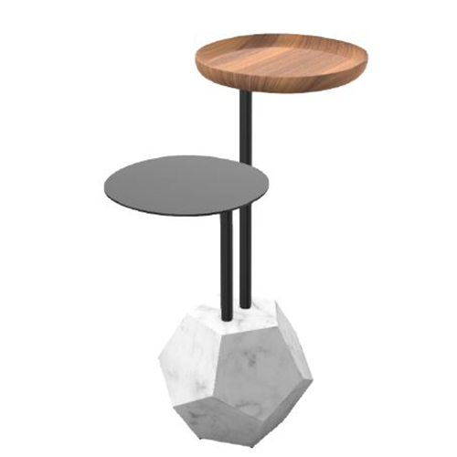 Журнальный столик MR. BROWN состоит из мраморного основания, на котором установлены две стальные пластины, на которые можно положить небольшой поднос из цельного дерева.